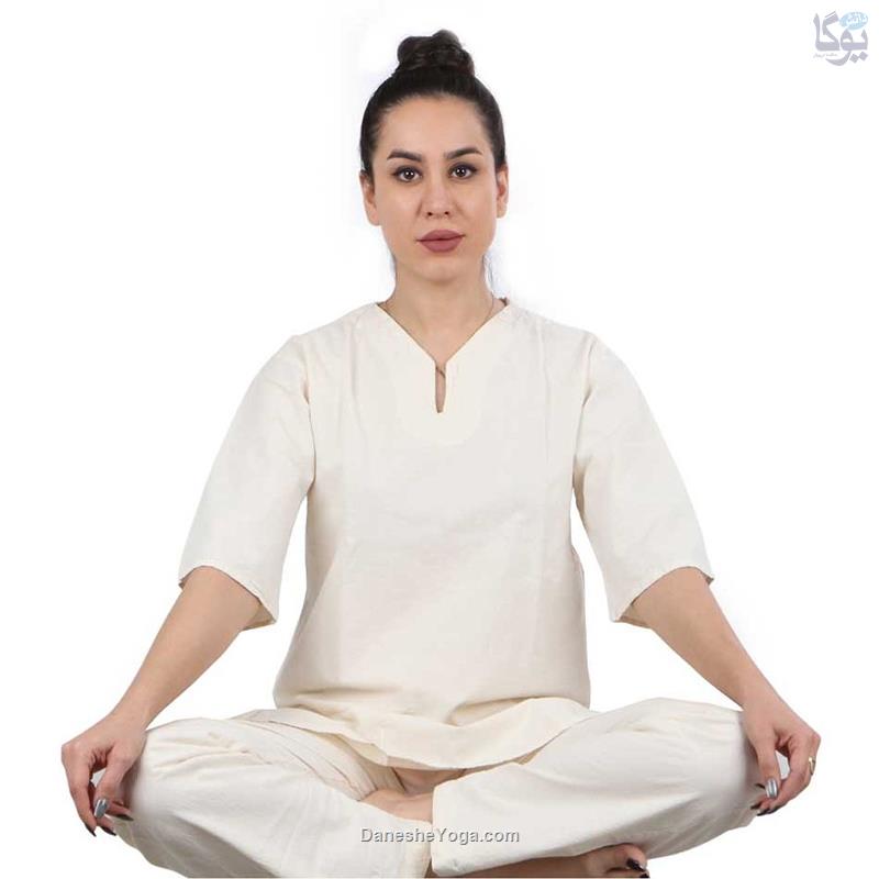 لباس نخی یوگا شامل پیرهن و شلوار است که از جنس ۱۰۰٪ نخ نرم و تنفس‌پذیر تهیه شده و جریان هوا را به‌خوبی عبور می‌دهد.